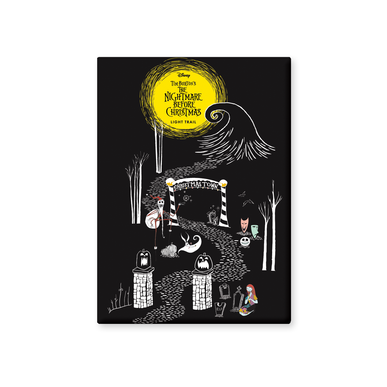 2 1/2" x 3 1/2" magnet made with a metal shell and a full magnet back featuring Disney Tim Burton’s The Nightmare Before Christmas Light Trail key art.